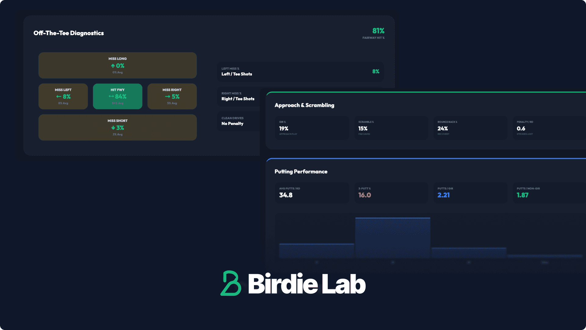 Birdie Lab turns your raw scorecard data into a "Truth Map." Instead of guessing why you’re stuck at a 22 handicap, we show you the Performance Metrics that actually matter: