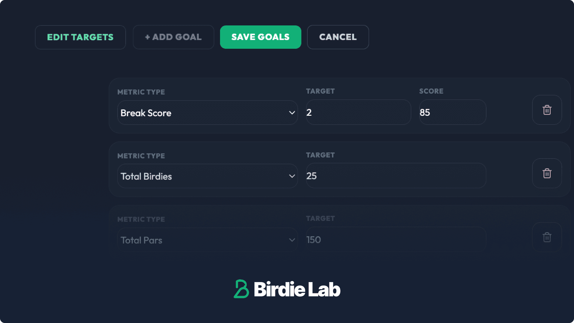 Real-Time Progress Tracking: See exactly how close you are to your milestones—whether it’s total birdies, breaking a specific score, or stacking up pars.
